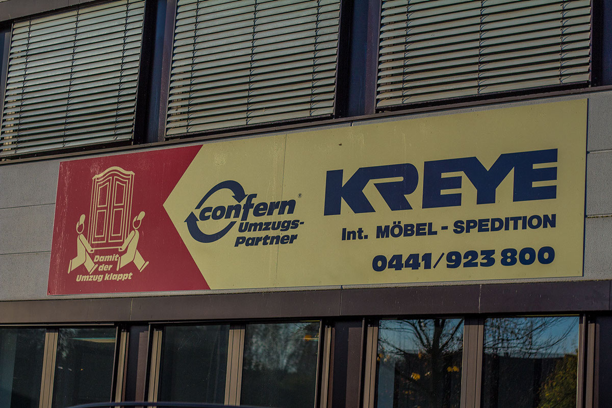 Das Bild zeigt das Firmenschild der Spedition Kreye